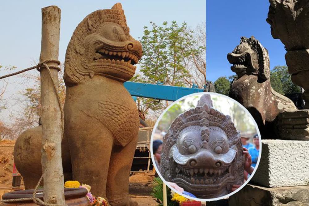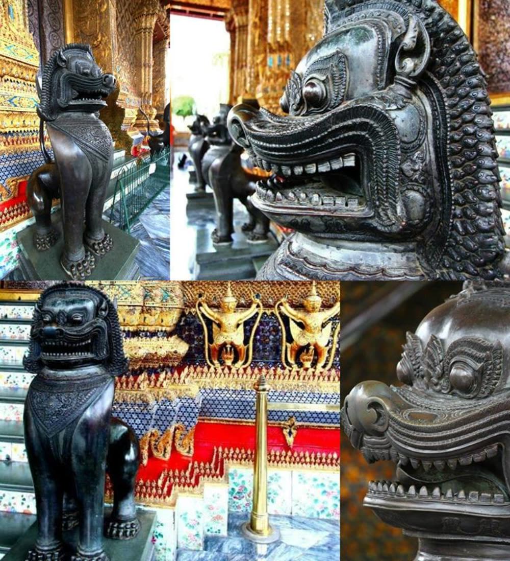 រូបចម្លាក់តោខ្មែរធ្វើពីសំរឹទ្ធជាច្រើននៅវាំងថៃ សង្ស័យសៀមប្រមូលទៅពេលវាយបែកអង្គរ