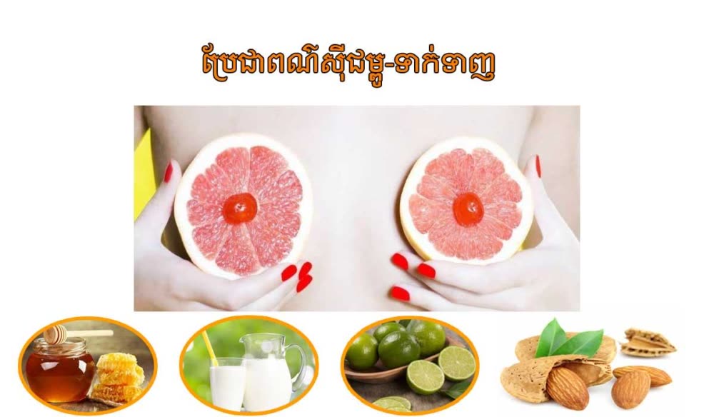 ទឹកកំបោរ + ទឹកឃ្មុំ លាយបញ្ចូលគ្នា ដោយលាបនិងទុកឱ្យវាស្ងួត ៣០នាទី។ លាងវាចោលហើយធ្វើម្តងទៀតម្តងក្នុងមួយសប្តាហ៍។ អ្នកក៏អាចបន្ថែមទឹកអាស៊ីដរបស់ក្រូច ដែលជួយធ្វើអោយស្បែករបស់អ្នកស្រស់ថ្លា និងធ្វើអោយក្បាលសុដន់របស់អ្នកមើលទៅស្រស់ថ្លា។