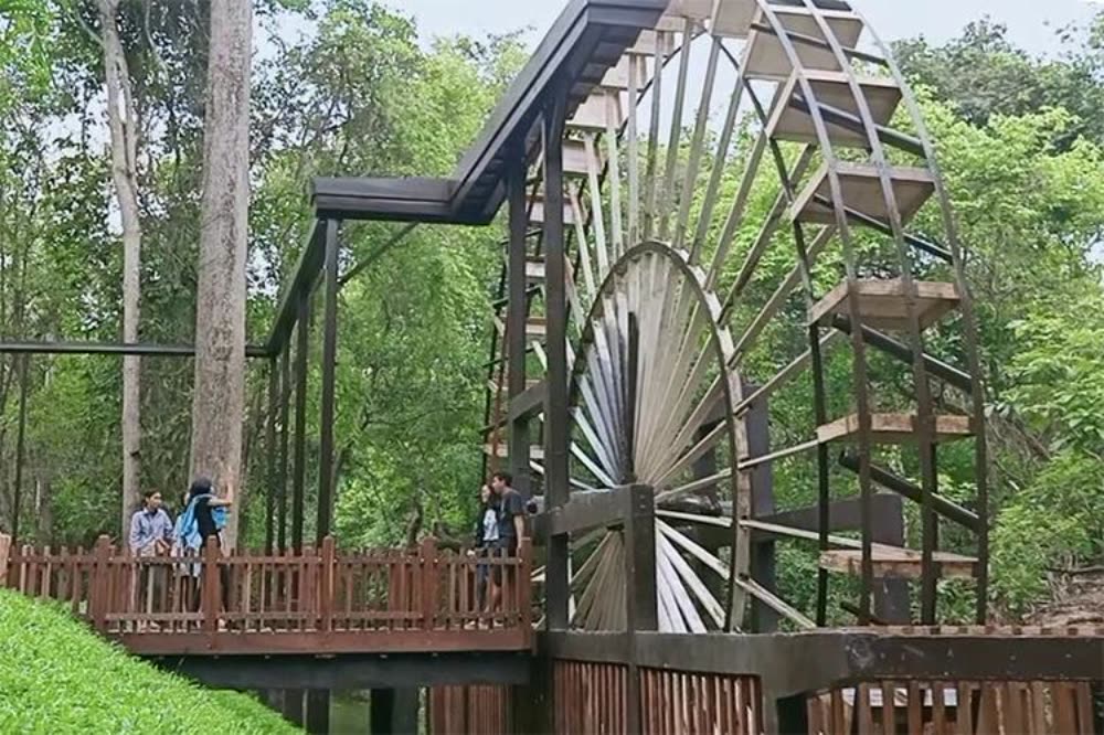 រហាត់ទឹកឈើដ៏ធំមួយនេះគឺជាអត្តសញ្ញាណមួយរបស់ខេត្ត មានទីតាំងស្ថិតក្នុងទីតាំងបណ្ដុះកូនឈើប្រាសាទតាកែវ ក្នុងឧទ្យានអង្គរ ដែលមានប្រវត្តិតាំងពីទសវត្សឆ្នាំ៦០មកម្ល៉េះ។ មុនការជួសជុល រហាត់ទឹកនេះសល់តែរូបរាង មានសភាពពុកផុយ និងខូចខាតធ្ងន់ធ្ងរមិនអាចដំណើរការបានឡើយ។