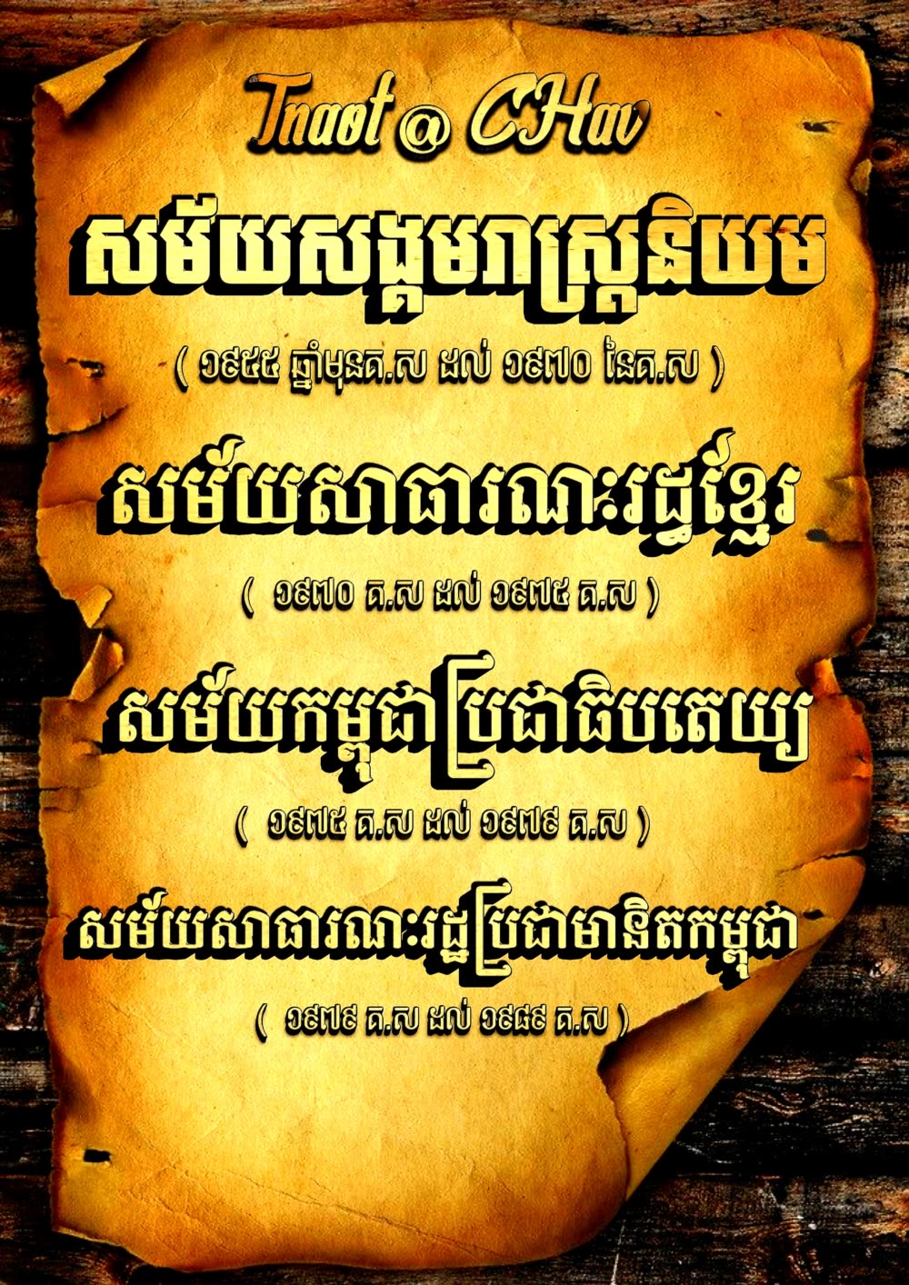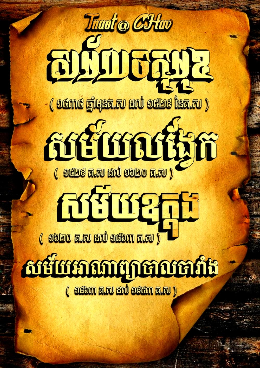 ទាំង ១៦ សម័យកាលខាងលើនេះគឺជាសម័យកាលដែលខ្មែរយើងបានឆ្លងកាត់ ហេតុនេះក្នុងនាមជាពលរដ្ឋខ្មែរ ពិតណាស់ថាត្រូវដឹងពីប្រវត្តិសាស្ត្ររបស់ប្រទេសខ្លួនឲ្យបានច្បាស់អំពើប្រវត្តិនឹងសម័យកាលរបស់ប្រទេសកម្ពុជាយើងក្នុងសម័យកាលនីមួយៗ។