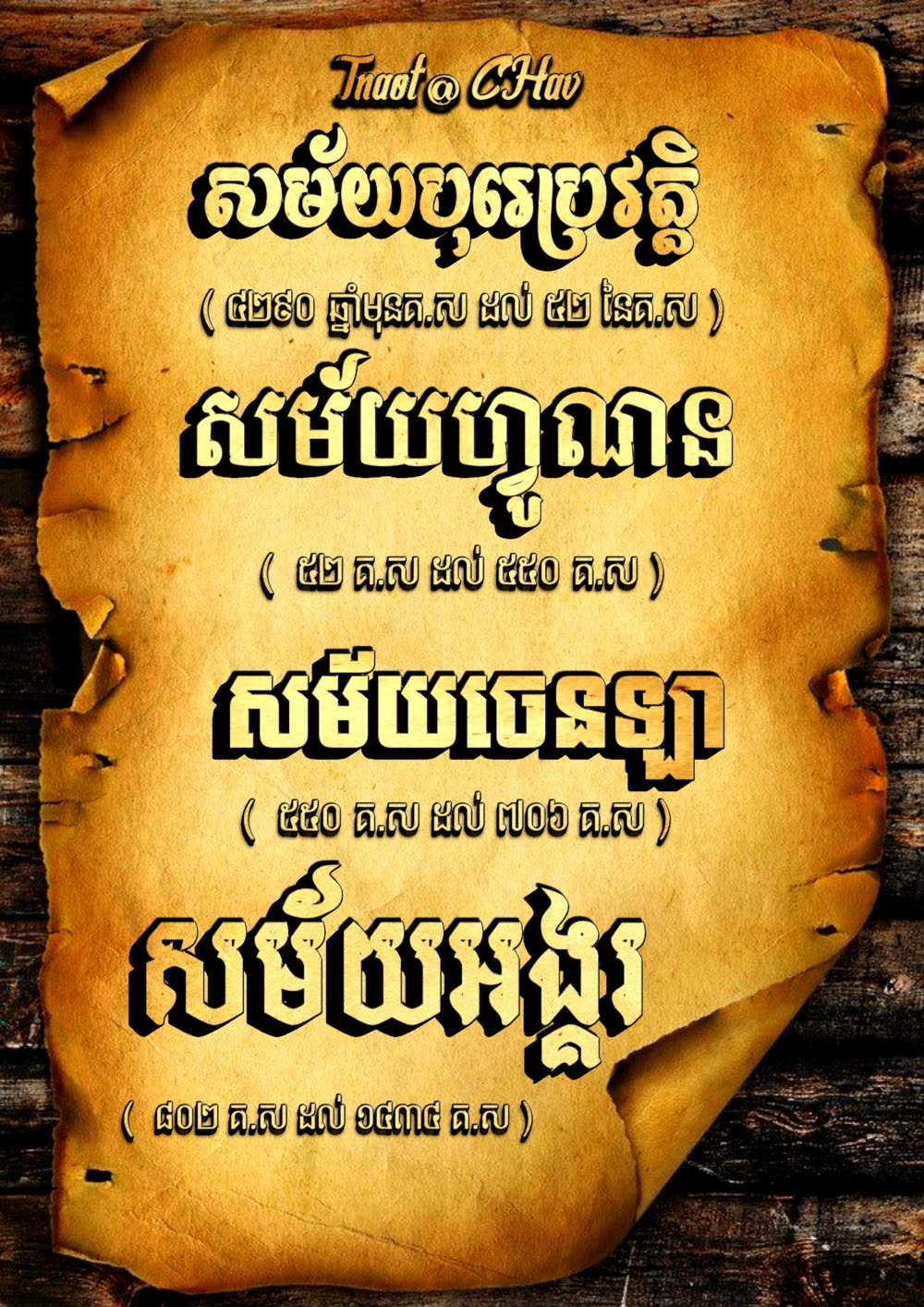 គេចែកប្រទេសកម្ពុជាចេញជា ១៦ សម័យកាលមុនគ.ស មានដូចជា៖