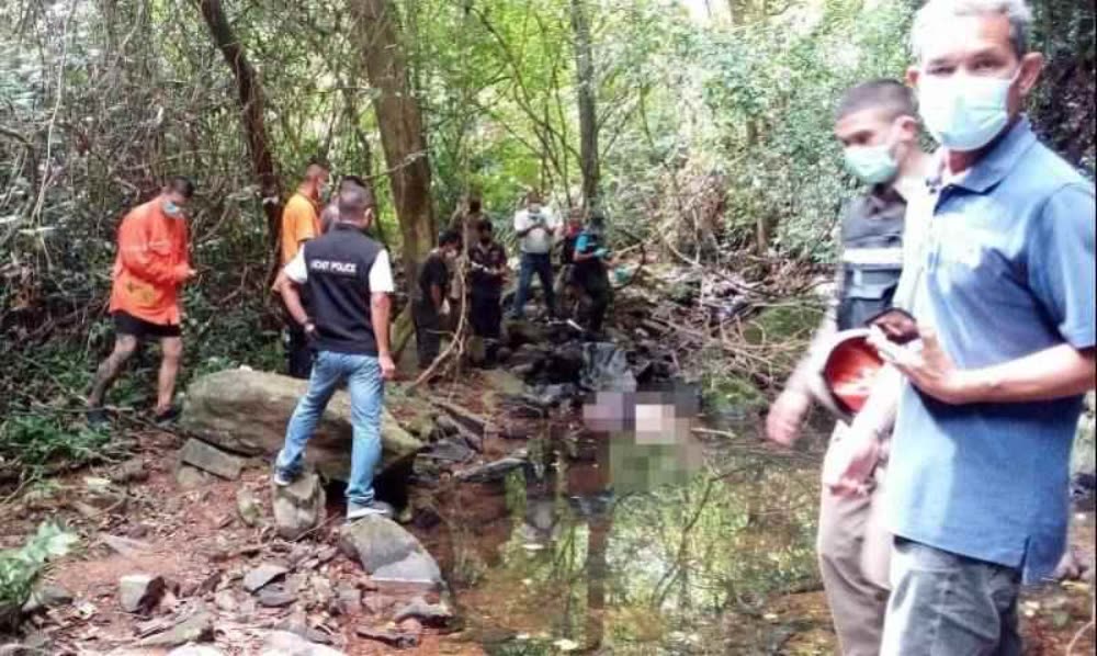 8月5日,普吉岛警方接民众报案,在一处瀑布附近岩石间发现一具女性尸体,下身赤裸,上身穿着粉色内衣,外罩一件夹克,脸部朝下趴在一条黑布上,双腿泡在水中,尸体已经浮肿。