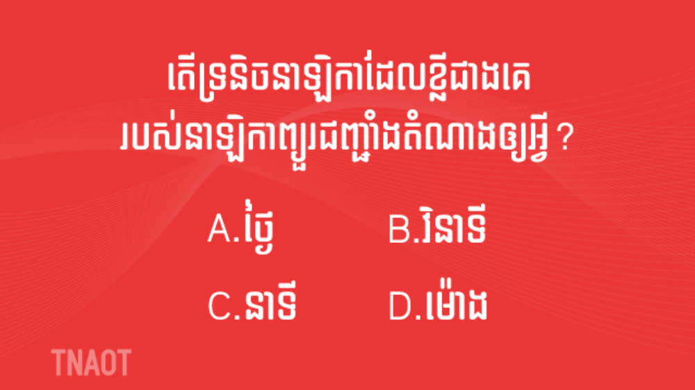 A.ថ្ងៃ, B.វិនាទី, C.នាទី, D.ម៉ោង