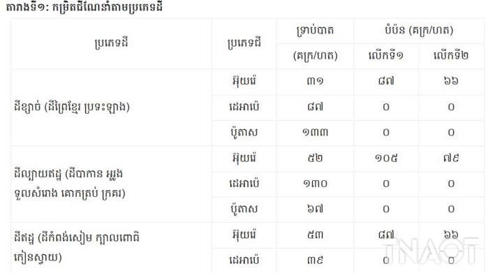 -បាចលើកទី១:ទ្រាប់បាតមុនពេលស្ទូងប្រើជីធម្មជាតិពី ៥-១០ តោន/ហតនិងរួមផ្សំជាមួយជីគីមីដូចមានក្នុងតារាងទី១។សម្រាប់ពេលវេលានៃការបាចជីបំប៉ន គឺត្រូវធ្វើឡើងនៅរយៈពេល១៥ ថ្ងៃ(បំប៉នលើកទីមួយ)និង ៣០ ថ្ងៃ (បំប៉នលើកទីពីរ)ក្រោយពេលស្ទូង។
