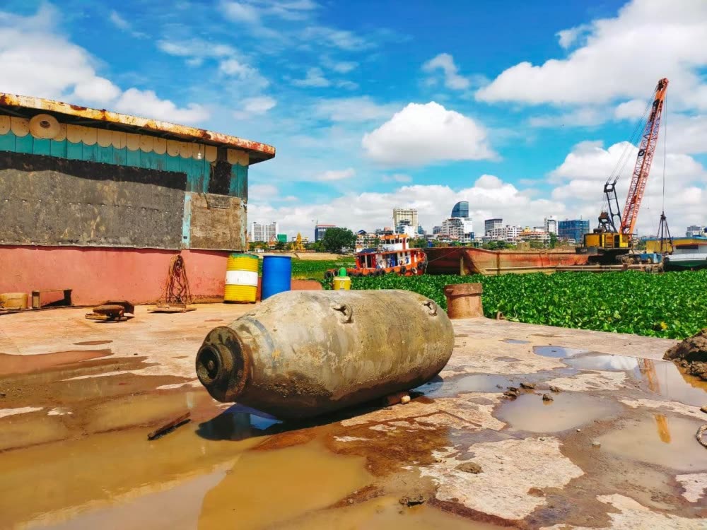 រកឃើញគ្រាប់បែកដ៏ធំមួយ នៅទន្លេបួនមុខក្បែរសណ្ឋាគារសុខាភ្នំពេញ ទល់មុខព្រះបរមរាជវាំង !