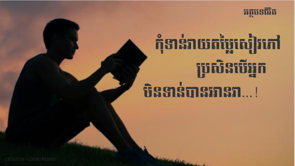 សៀវភៅគេបង្កើតឡើងមិនមែនឱ្យអ្នកគ្រាន់តែអានចំណងជើងដែលនៅលើក្របសៀវភៅនោះទេ គឺគេបង្កើតឡើងសម្រាបឱ្យអ្នកស្វែងយល់ពីអត្ថន័យដែលនៅក្នុងសៀវភៅនោះ ស្វែងយល់ពីអ្វីដែលល្អៗដែលគេបានដាក់បញ្ចូលនៅក្នុងសៀវភៅនោះ។