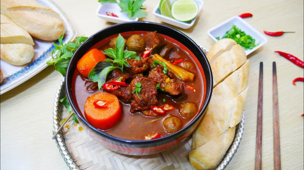 សាច់គោ អំបិល ដូងទុំ ស្ករ ម្សៅស៊ុប សណ្ដែកដីលីង ប៉េងប៉ោះកំប៉ុង ឬសជីវ៉ាន់ស៊ុយ ខ្ទឹមស ម្រេច ខ្លាញ់រាវ ។