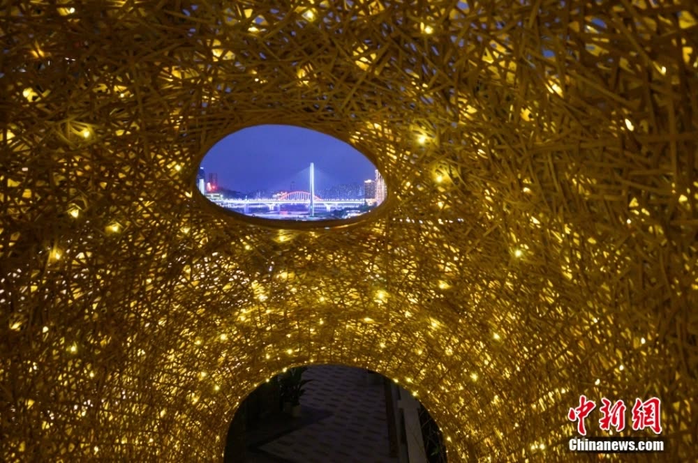 重庆开埠遗址公园内由非遗“道明竹编”打造的隧道景观