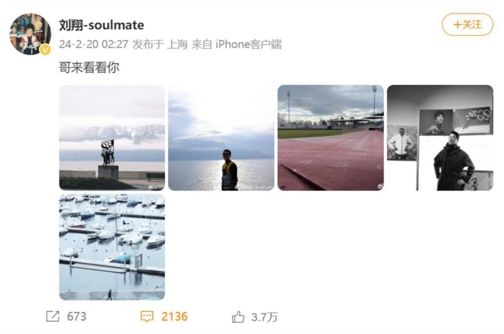 刘翔晒出五张照片,并配文称:“哥来看看。”从照片上看,刘翔应该是来到了瑞士洛桑,重游故地。