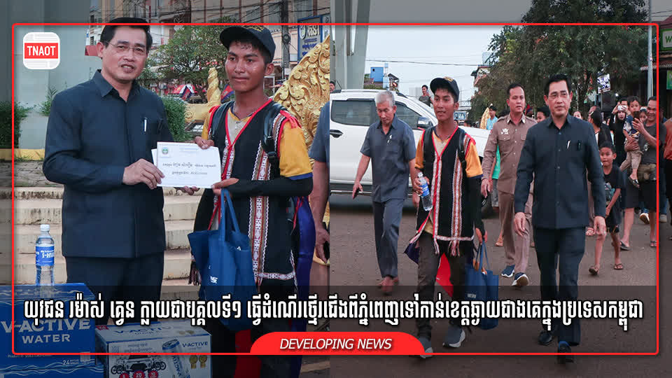 អស្ចារ្យណាស់! យុវជន រម៉ាស់ គ្វេន ធ្វើដំណើរថ្មើរជើង ពីភ្នំពេញ មកដល់ខេត្តរតនគិរី ដោយជោគជ័យ ត្រឹមរយៈពេល ១២ថ្ងៃ