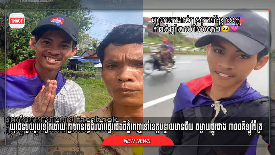 គួរឲ្យអាណិត! យុវជនម្នាក់ សម្រេចចិត្តធ្វើដំណើរថ្មើរជើងពីភ្នំពេញទៅខេត្តបន្ទាយមានជ័យ ដោយសារមានជំងឺបាក់ទឹកចិត្ត