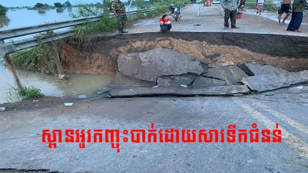ស្ពានអូរកញ្ចុះ ស្ថិតនៅឃុំអំពិលប្រាំដើម ស្រុកបវិល ខេត្តបាត់ដំបង បានបាក់ស្រុតចុះទាំងស្រុង នៅព្រឹកថ្ងៃទី ១៥ ខែតុលានេះ ដោយសារទឹកជំនន់។