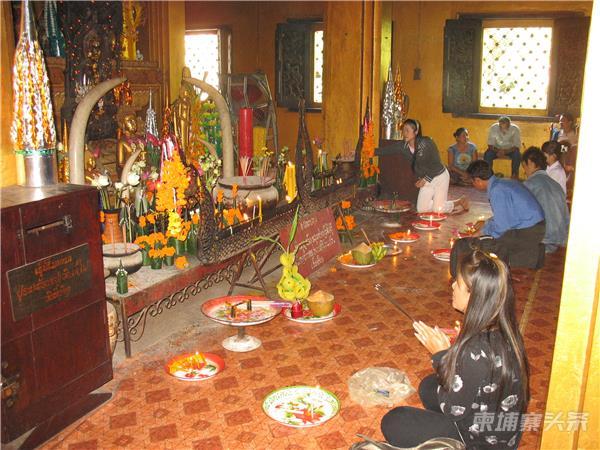 柬埔寨亡人节持续15天的时间,其中,最后3天是法定假日。亡人节在很大程度上有些像华人的清明节,追思亡灵祭拜先人是节日主旨。不同的是柬埔寨的亡人节有着浓厚的宗教色彩。虔诚的佛教徒,在亡人节的15天中,每天早上4点半必然起床,去不同位置的寺庙参加传统的宗教祭拜仪式。寺庙里的善男信女跪坐在地,双手合十,听僧侣诵经。呼唤先人亡灵前来就餐的同时,也以佛教特有的大慈大悲呼唤那些孤魂野鬼前来分享生者的慈爱。诵经声低回悠长,如泣如诉,晨光熹微中听起来充满悲悯。